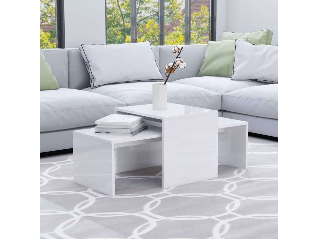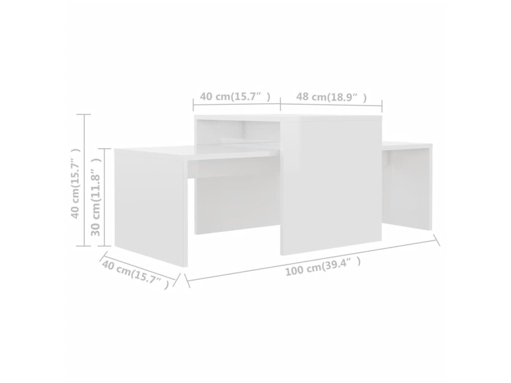 Set konferenčních stolků bílý vysoký lesk 100x48x40 cm kompozit