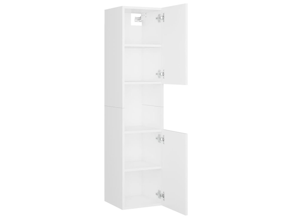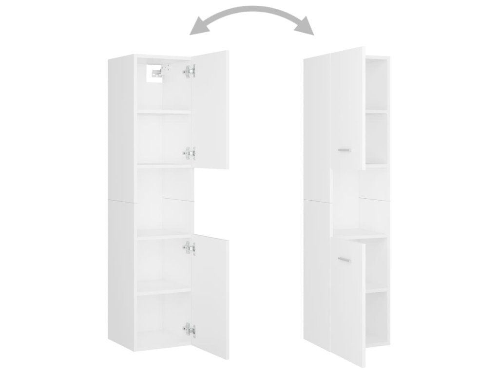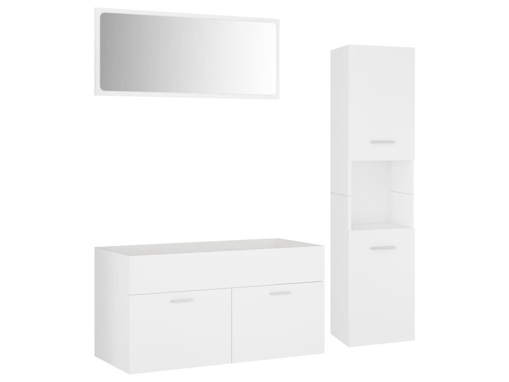 Sada nábytku obsahuje skříňku pod umyvadlo, vysokou skříň a zrcadlo. Stylová umyvadlová skříňka má 1 přihrádku a nahoře je ideálně uzpůsobená k umístění umyvadla. Ve vysoké skříni najdete za dvěma dvířky celkem 5 přihrádek, které vám poskytnou spoustu místa k uložení vašich věcí. Zrcadlo zase dodá vaší domácnosti nový půvab. Celý set koupelnového nábytku snadno očistíte navlhčeným hadříkem.