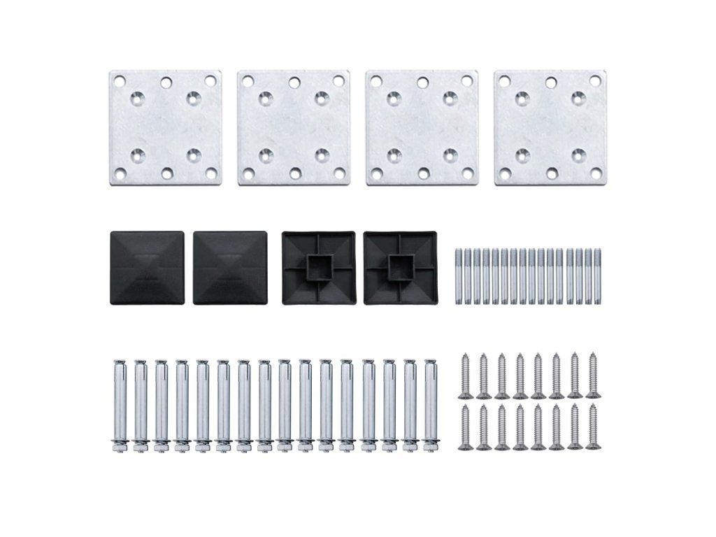 Plotové panely mají modulární design, který umožňuje snadnou instalaci a neomezené prodlužovaní plotu. Sloupky mají tři drážky, takže můžete plot sestavit různými způsoby, například v přímce (180 stupňů), v pravém úhlu (90 stupňů) nebo ve tvaru písmene „T“. Multifunkční ocelové nohy lze upevnit dvěma způsoby. První způsob je našroubovat je na povrch dodanými kotevními šrouby. Druhý způsob je ukotvit je do cementového základu zemním hrotem (není součástí balení).