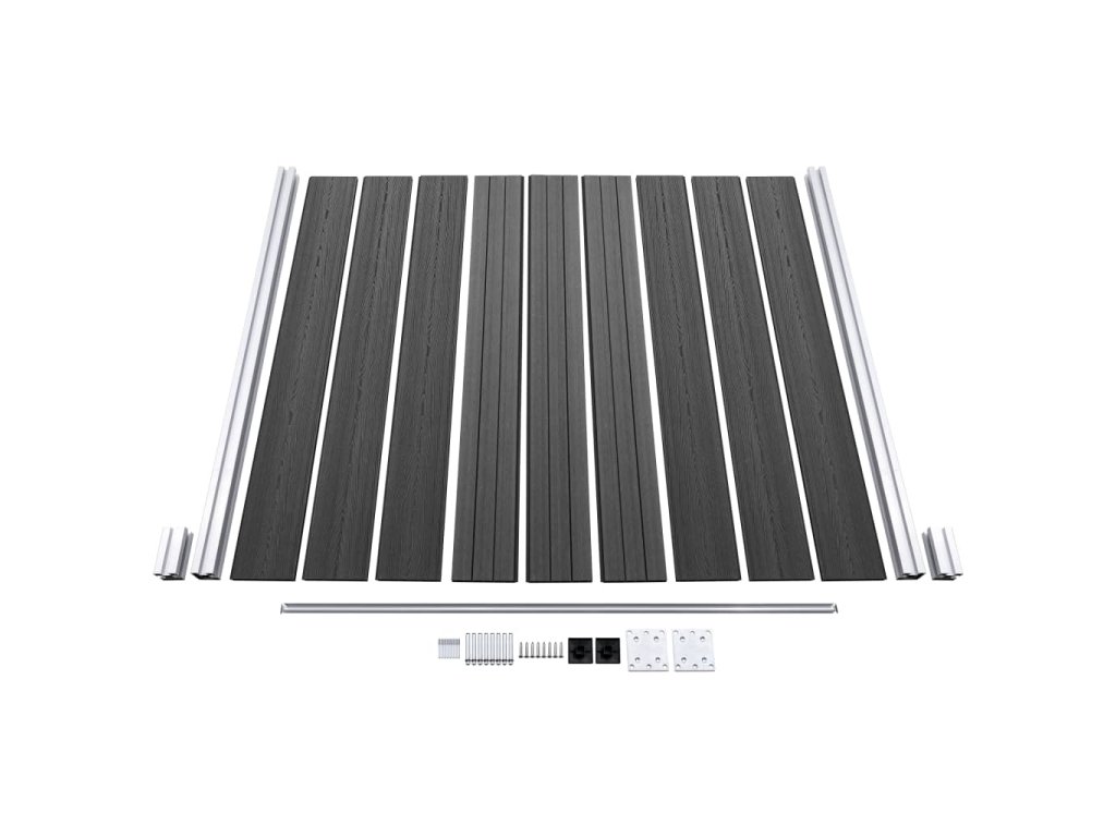 - Materiál: WPC (dřevoplast), hliník, ocel