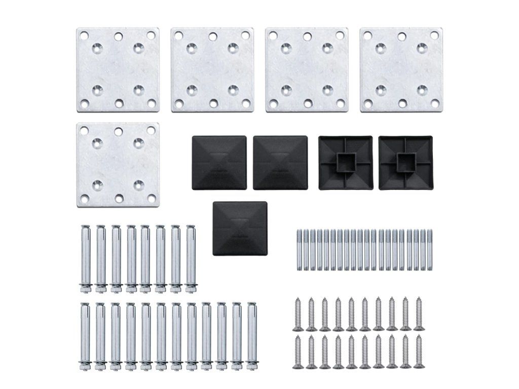 Plotové panely mají modulární design, který umožňuje snadnou instalaci a neomezené prodlužovaní plotu. Sloupky mají tři drážky, takže můžete plot sestavit různými způsoby, například v přímce (180 stupňů), v pravém úhlu (90 stupňů) nebo ve tvaru písmene „T“. Multifunkční ocelové nohy lze upevnit dvěma způsoby. První způsob je našroubovat je na povrch dodanými kotevními šrouby. Druhý způsob je ukotvit je do cementového základu zemním hrotem (není součástí balení).