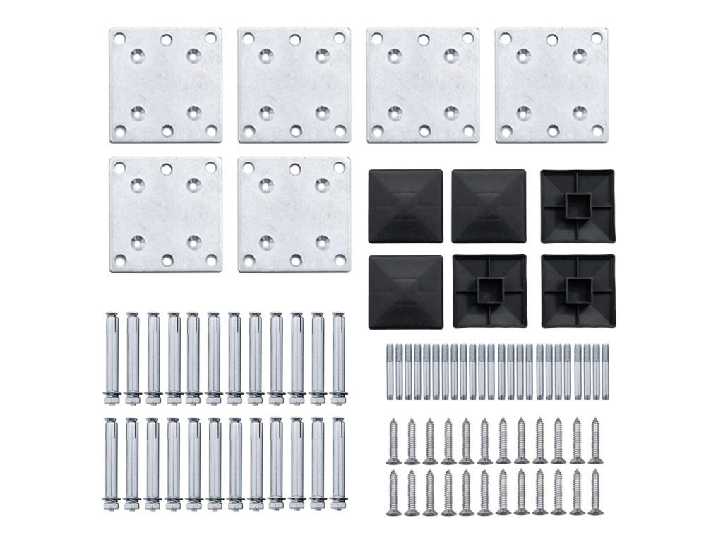 Plotové panely mají modulární design, který umožňuje snadnou instalaci a neomezené prodlužovaní plotu. Sloupky mají tři drážky, takže můžete plot sestavit různými způsoby, například v přímce (180 stupňů), v pravém úhlu (90 stupňů) nebo ve tvaru písmene „T“. Multifunkční ocelové nohy lze upevnit dvěma způsoby. První způsob je našroubovat je na povrch dodanými kotevními šrouby. Druhý způsob je ukotvit je do cementového základu zemním hrotem (není součástí balení).