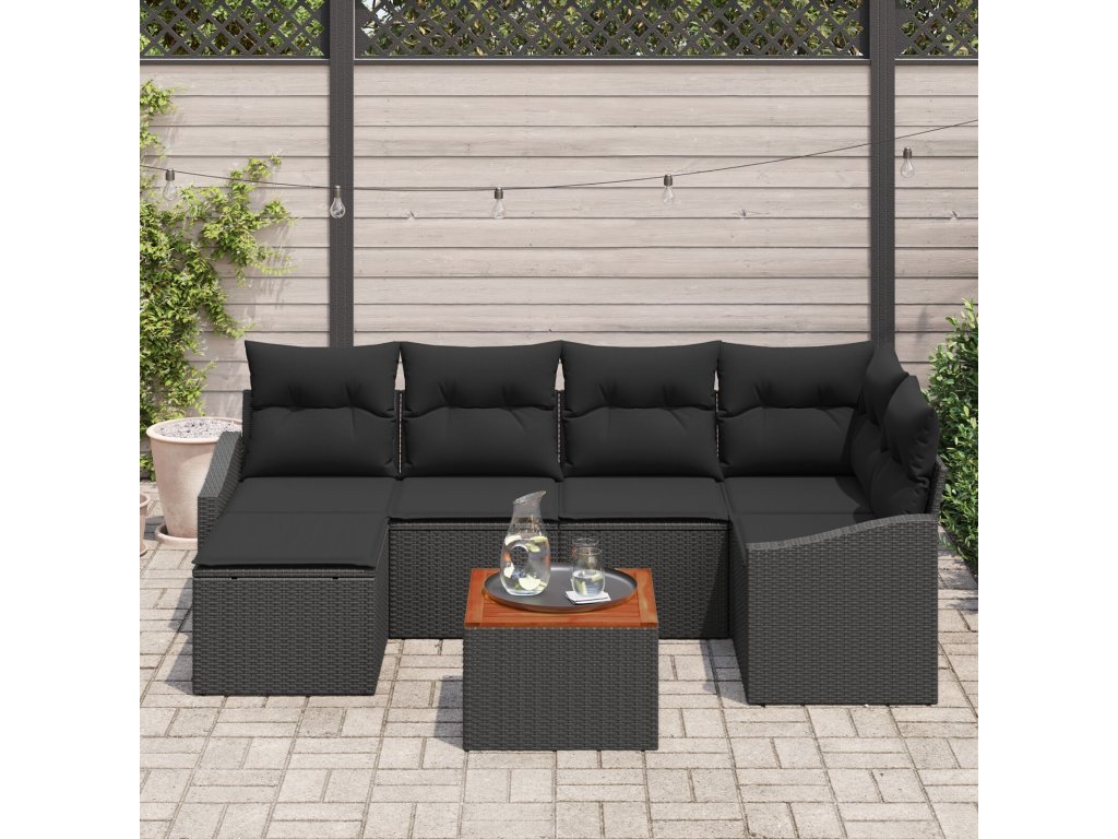 Sada zahradních pohovek s polštářem 7 pcs Černá Poly ratan