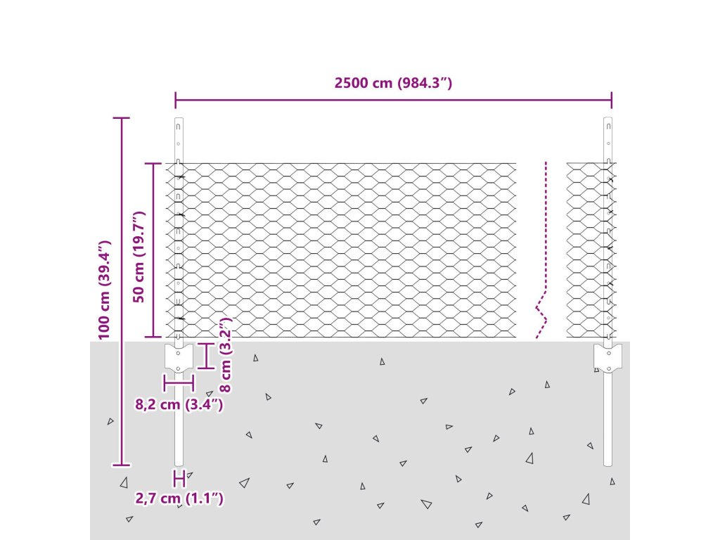 - Celkové rozměry: 2500,0 x 2,7 x 50 cm (D x Š x V)