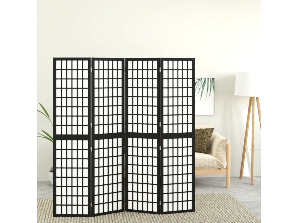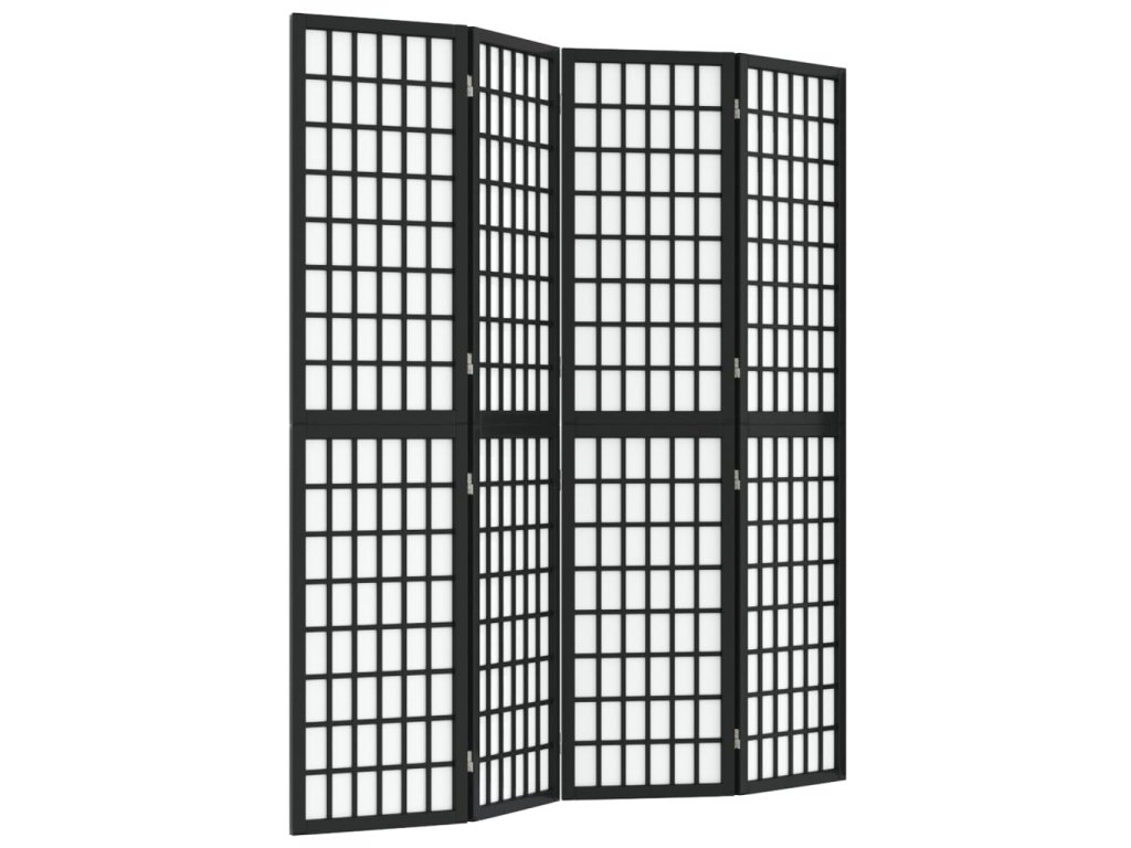 Skládací 4dílný paraván v japonském stylu 160 x 170 cm černý