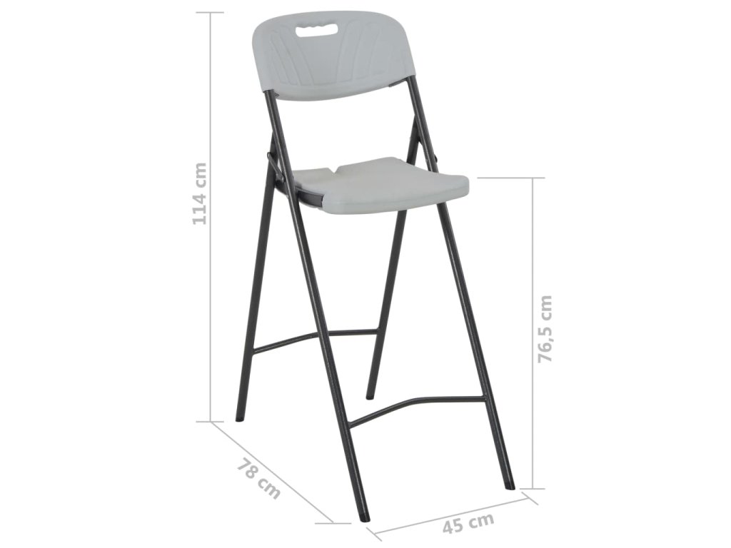 Díky pevnému ocelovému rámu je sada barových židlí vysoce odolná a stabilní. Židle jsou vyrobeny z HDPE, takže jsou odolné vůči povětrnostním vlivům, snadno se čistí a jsou vhodné pro venkovní použití. Židle jsou lehké a můžete je snadno přesouvat. Když je právě nepoužíváte, můžete je složit, abyste ušetřili místo. Balení obsahuje 2 skládací barové židle.