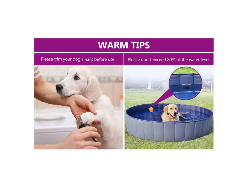 Bazén pro zvířata je vyrobený z prvotřídních PVC materiálů a má vyztužené hrany, což zajišťuje jeho výtečnou stabilitu a odolnost. Protiskluzový povrch umožní vašim malým kamarádům, aby si užili spoustu bezpečné zábavy. Originální skládací design usnadňuje uklizení bazénu, když ho právě nepoužíváte.