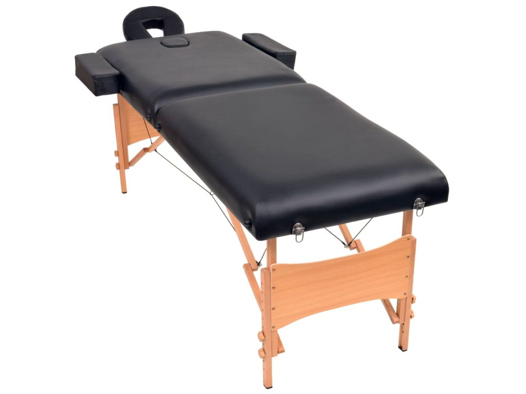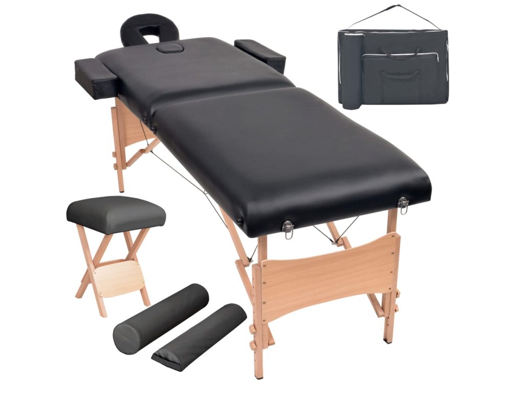 Skládací masážní stůl 2 zóny a stolička tloušťka 10 cm černé