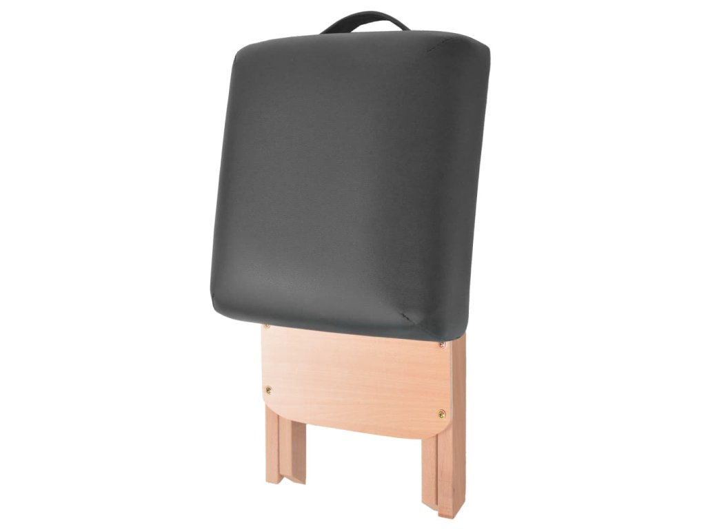 Masážní stůl a stolička mají pevný dřevěný rám, který zajišťuje jejich odolnost, a jsou čalouněny vysoce kvalitní umělou kůží. Luxusní, mimořádně silné lehátko a sedák stoličky, opěrka hlavy a postranní opěrky pro paže vám zaručí maximální pohodlí. Opěrka hlavy a přední opěrka paží jsou nastavitelné, stejně jako výška stolu, což umožňuje uživateli pohodlně ležet a masážnímu terapeutovi zvolit požadovanou pracovní výšku. Pro snadné skladování a přepravu lze tuto stoličku snadno složit. Přiložené podhlavníky mají dva různé tvary a dají se použít k rozličným účelům. Pro pohodlí či lepší pozici jimi můžete podepřít kolena, kotníky nebo dokonce i podbřišek.