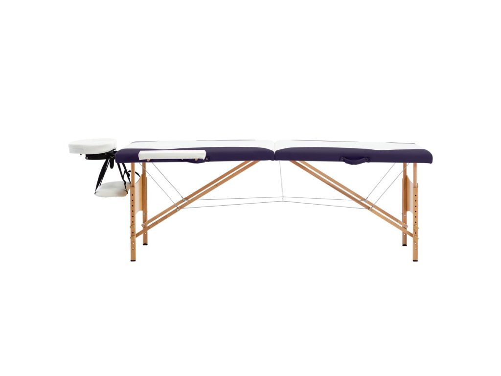 Skládací masážní stůl 2 zóny dřevěný bílý a fialový