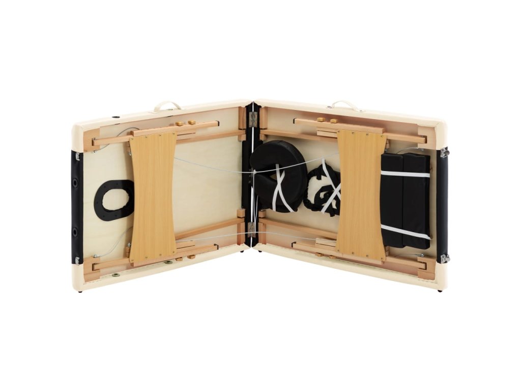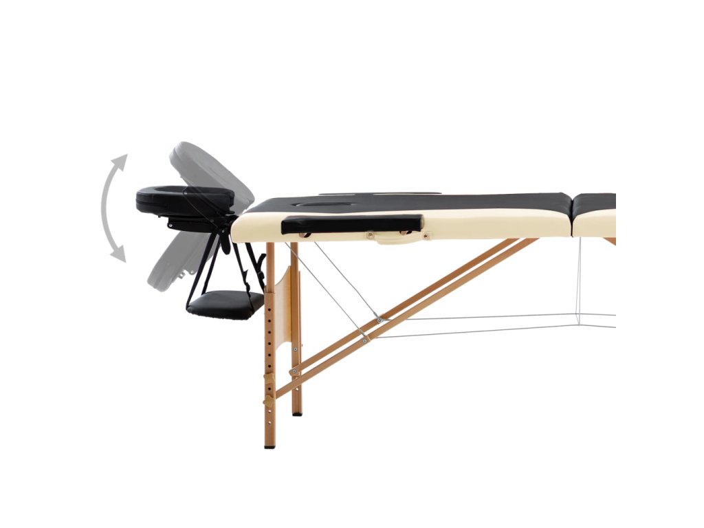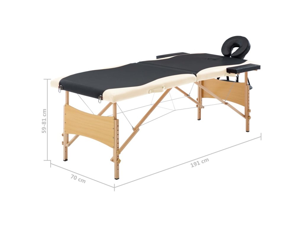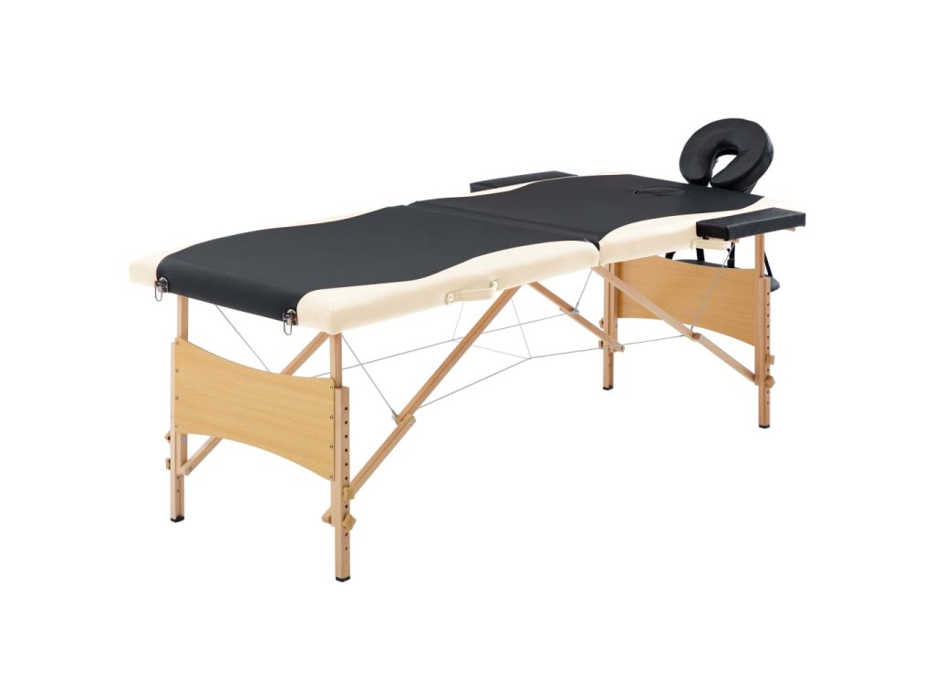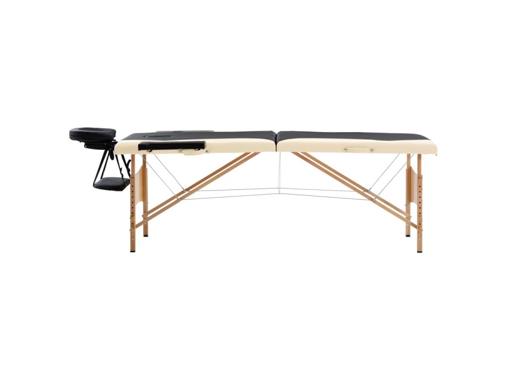 Skládací masážní stůl 2 zóny dřevěný černý a béžový