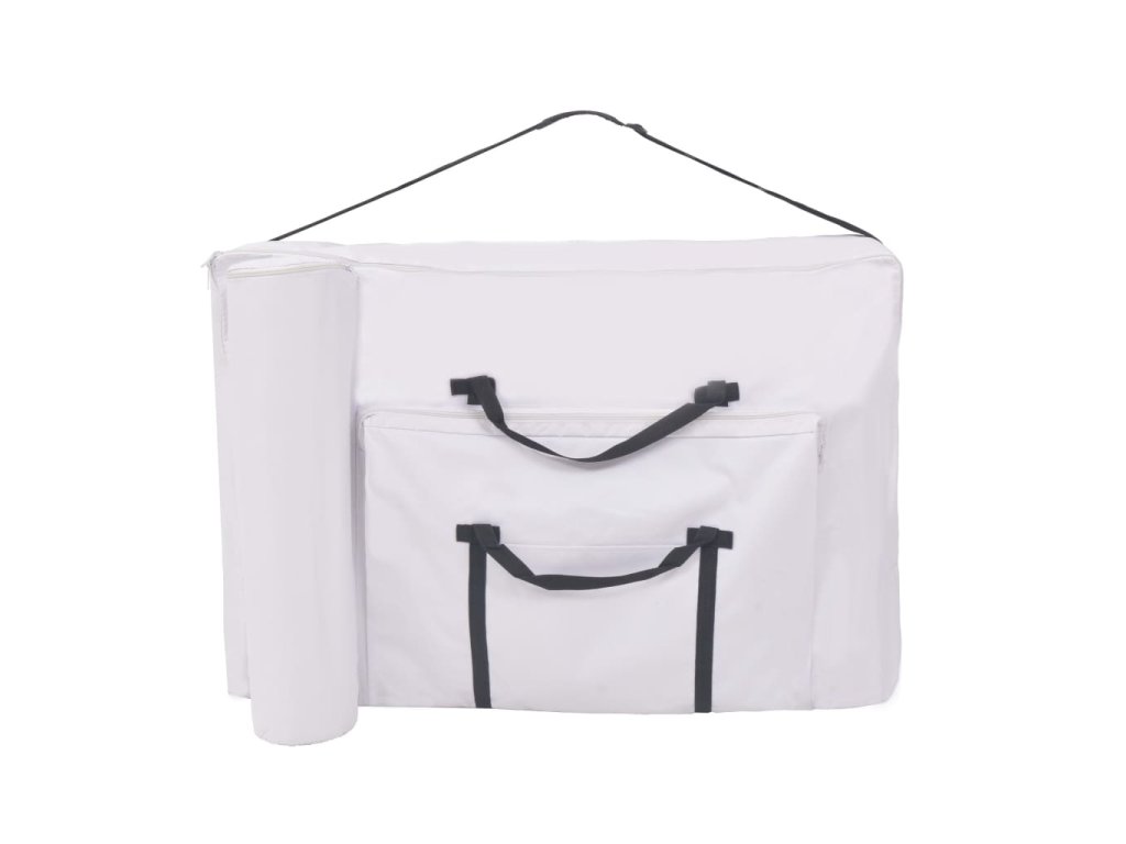 Masážní stůl lze jednoduše složit a pro snadnou přepravu a skladování jej můžete uložit do tašky ve stylu kufru. Přepravní taška je součástí dodávky.