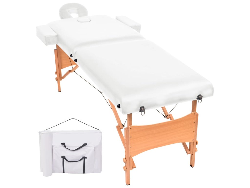Skládací masážní stůl 2 zóny tloušťka 10 cm bílý