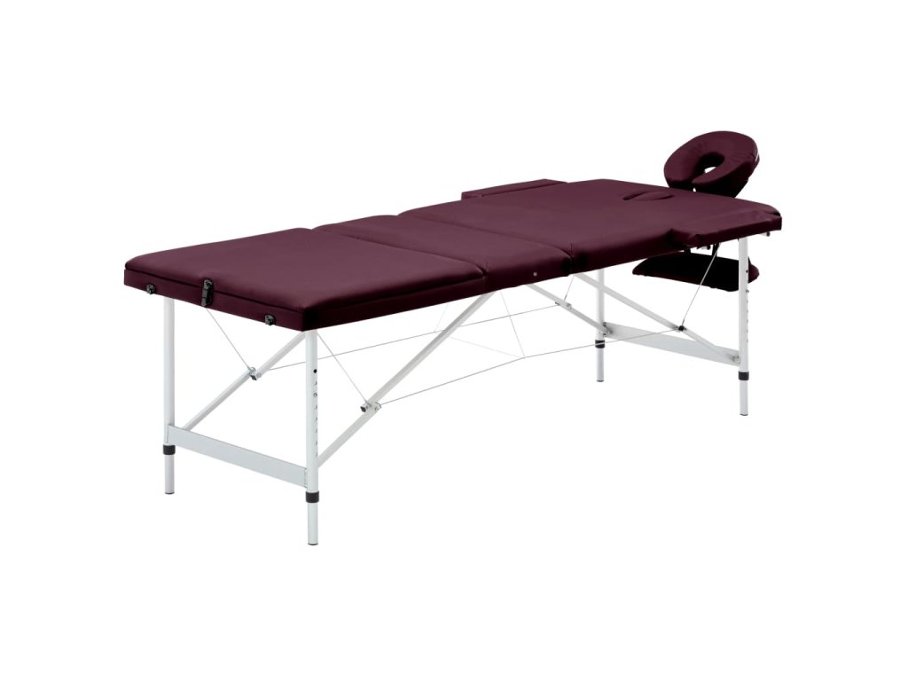 Skládací masážní stůl 3 zóny hliník vínově fialový