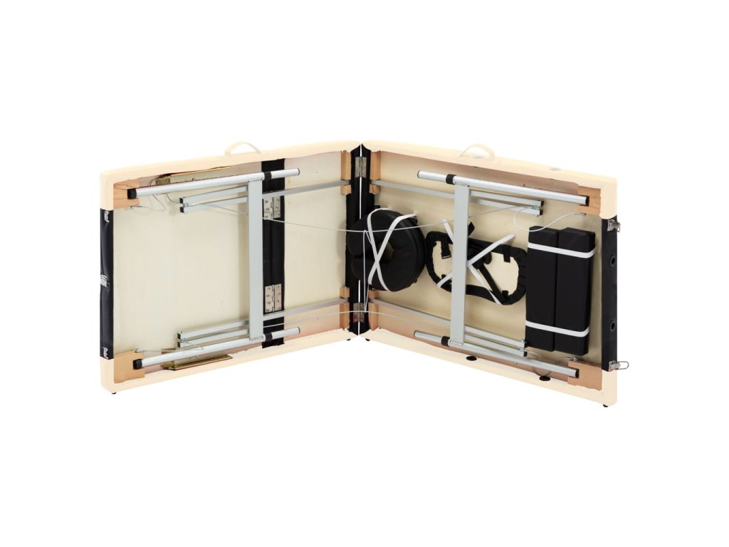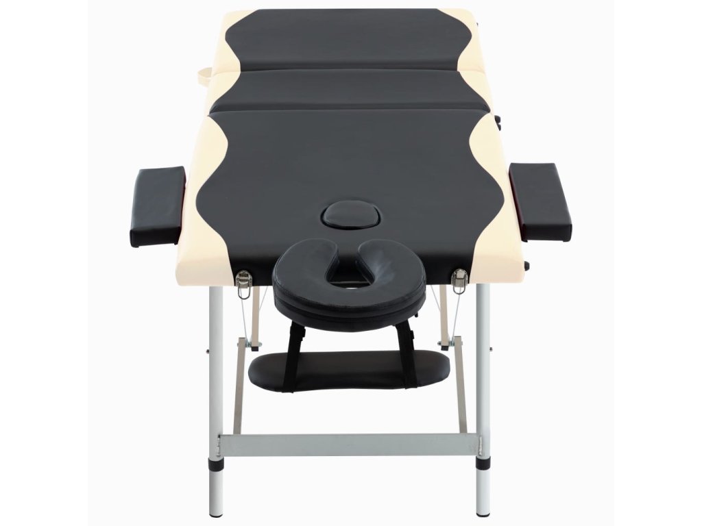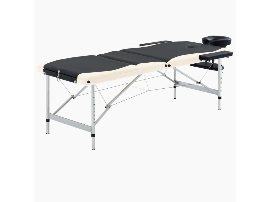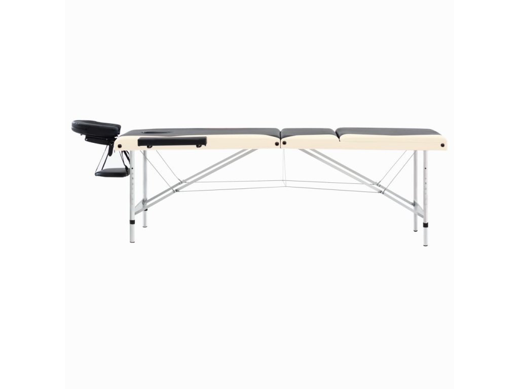 Skládací masážní stůl se 3 zónami hliník černý a béžový