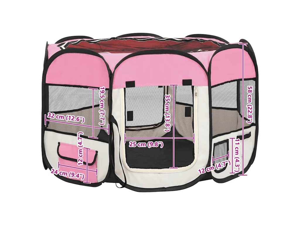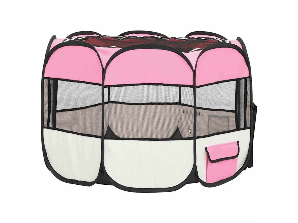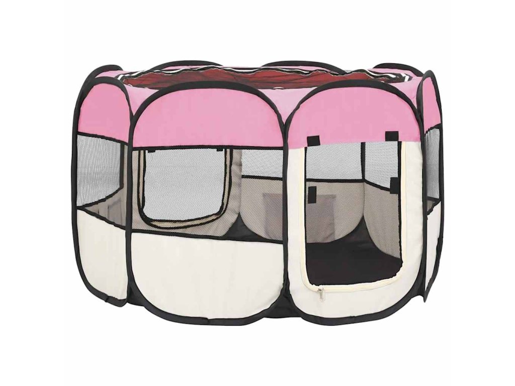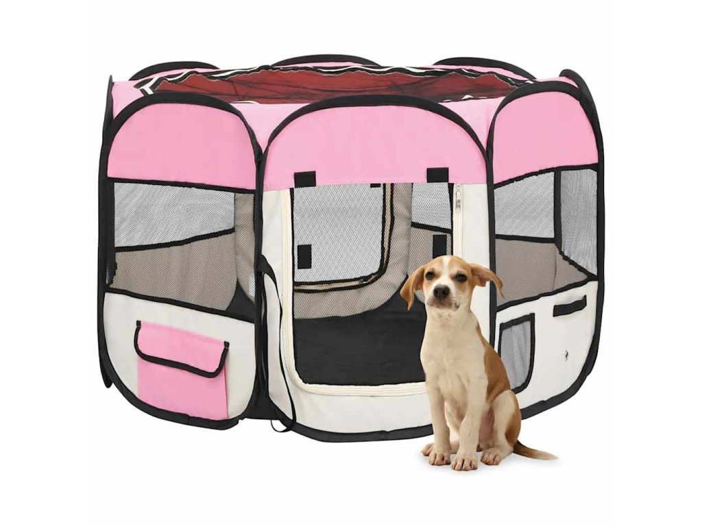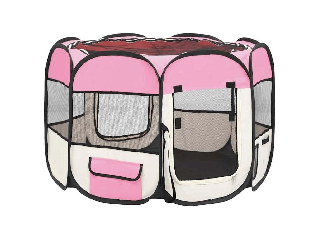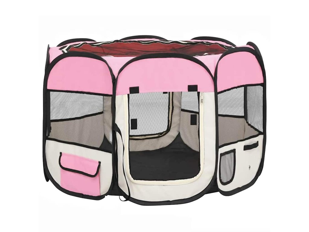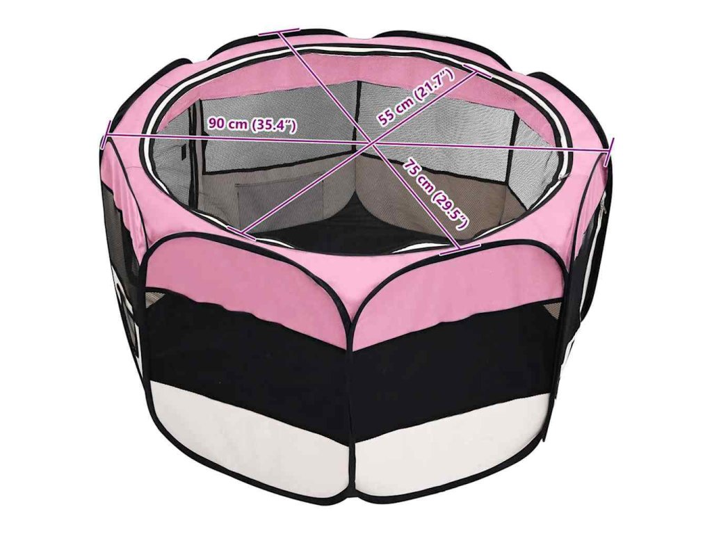 Skládací ohrádka pro psy s taškou růžová 90 x 90 x 58 cm