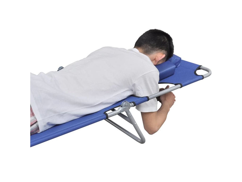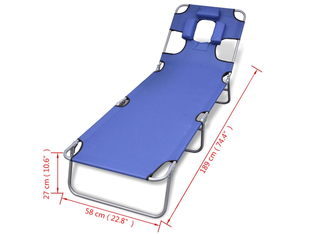 Skládací opalovací lehátko s podhlavníkem práškovaná ocel modré