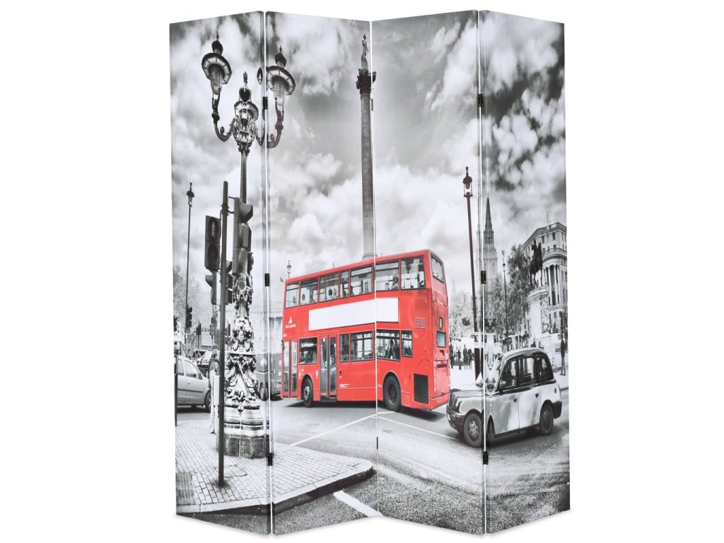 Tato dělící stěna má masivní dřevěný rám a je potažena odolným plátnem, na kterém je krásná monochromatická fotografie vyobrazující ulici v Londýně s ikonickým dvoupatrovým autobusem v kontrastní červené barvě a vašemu interiéru dodá nádech moderního stylu. Tato dělící stěna může být pro úsporu místa také jednoduše složena, když ji právě nepoužíváte.