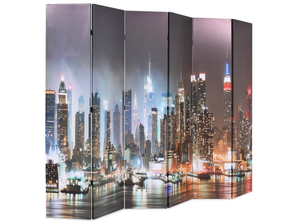 Tato dělící stěna má masivní dřevěný rám a je potažená odolným plátnem, na kterém je velkolepá fotografie vyobrazující panoramatický pohled na noční New York a nádhernou Empire State Building a vašemu interiéru dodá nádech moderního stylu. Tato dělící stěna může být pro úsporu místa také jednoduše složena, když ji právě nepoužíváte.