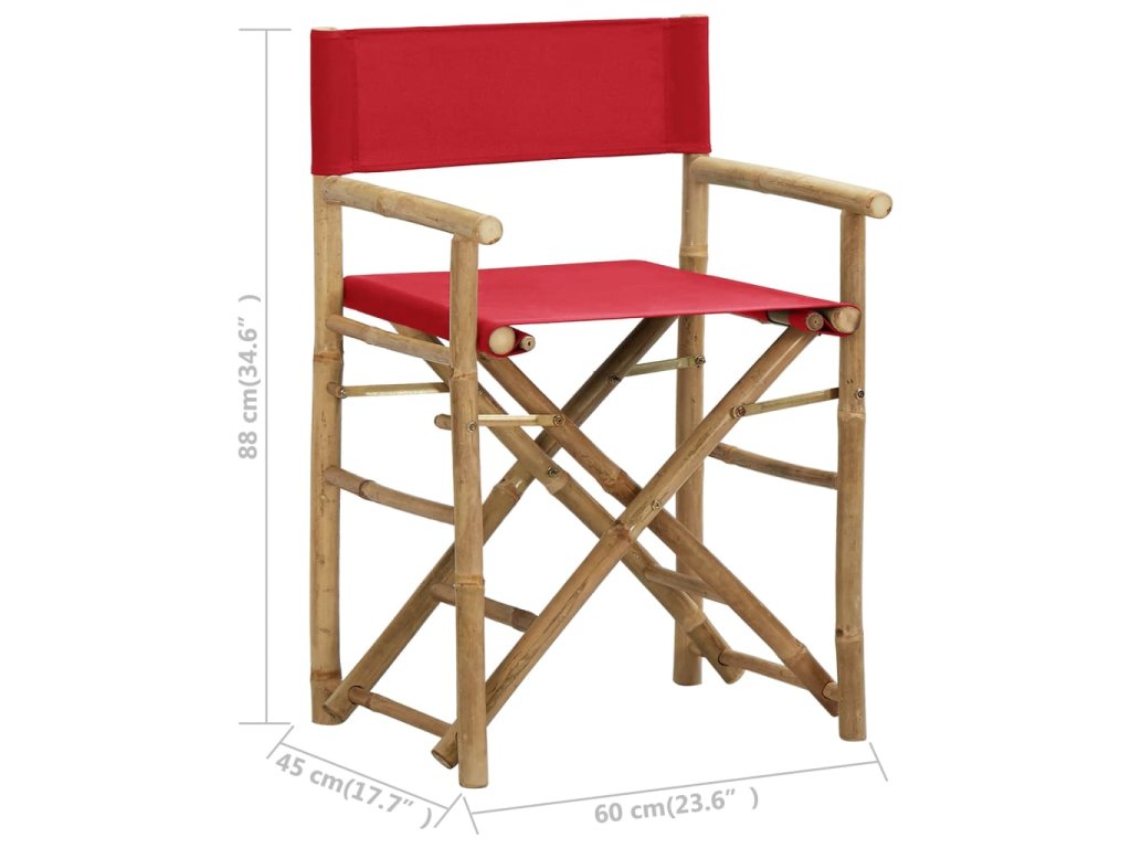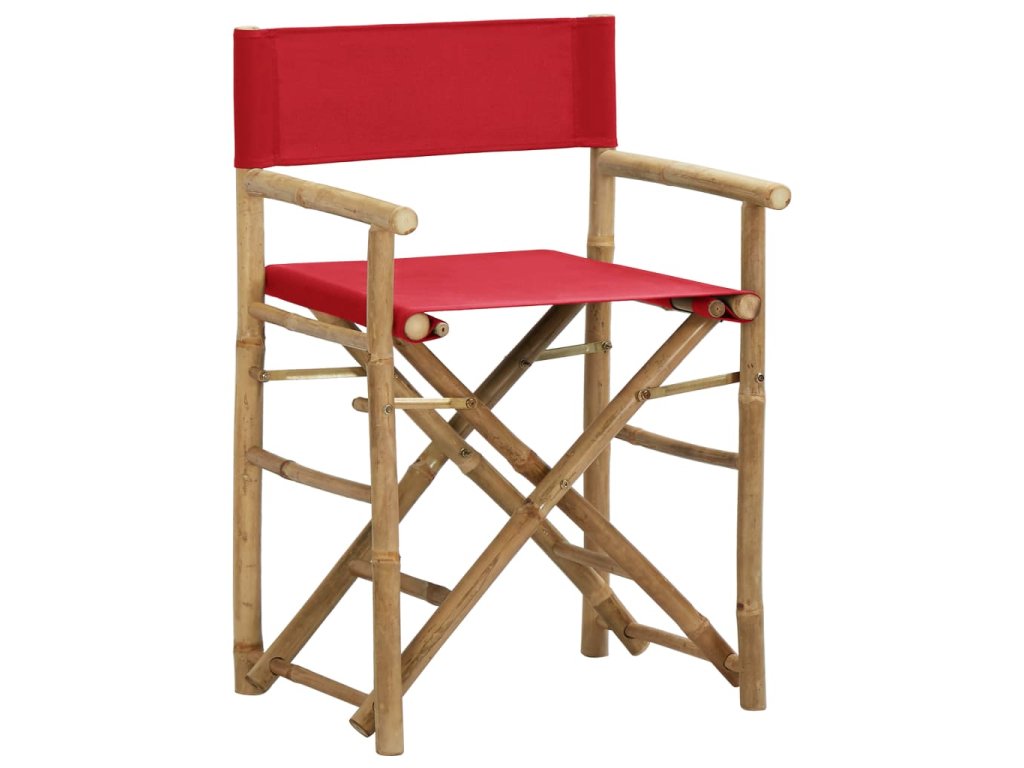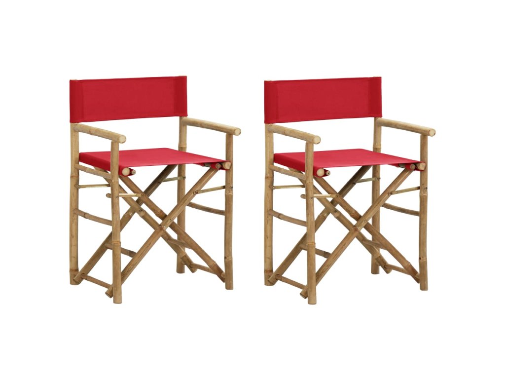 Skládací režisérská křesla 2 ks červená bambus a textil