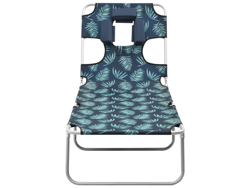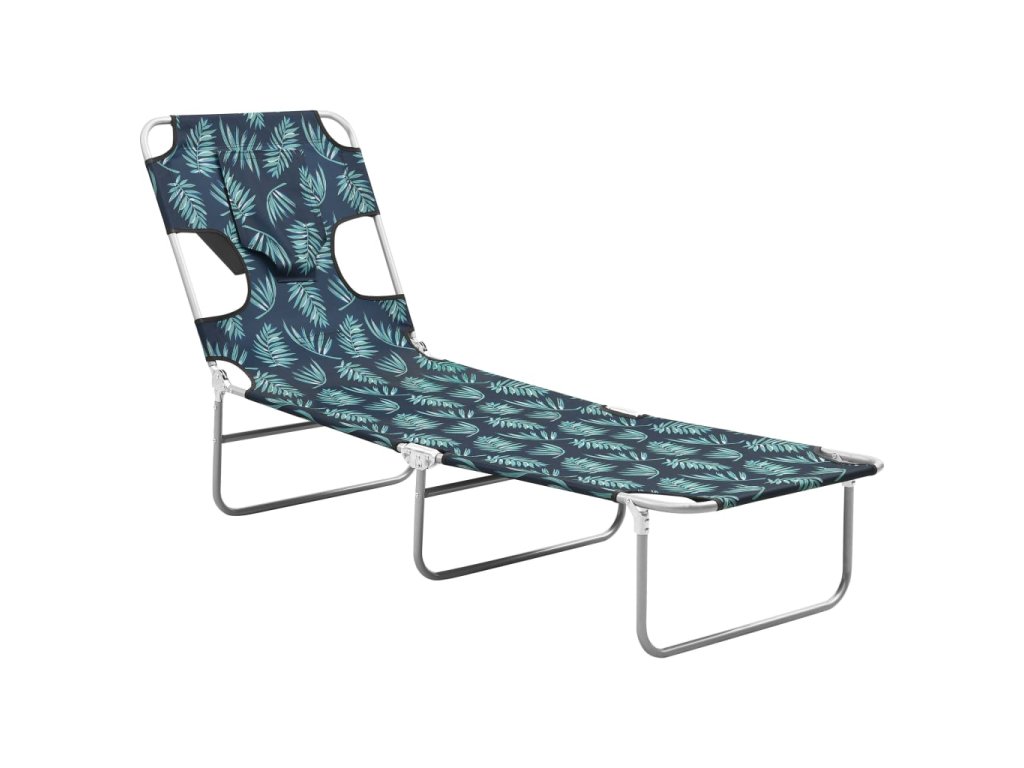 Skládací zahradní lehátko s podhlavníkem ocel potisk s listy