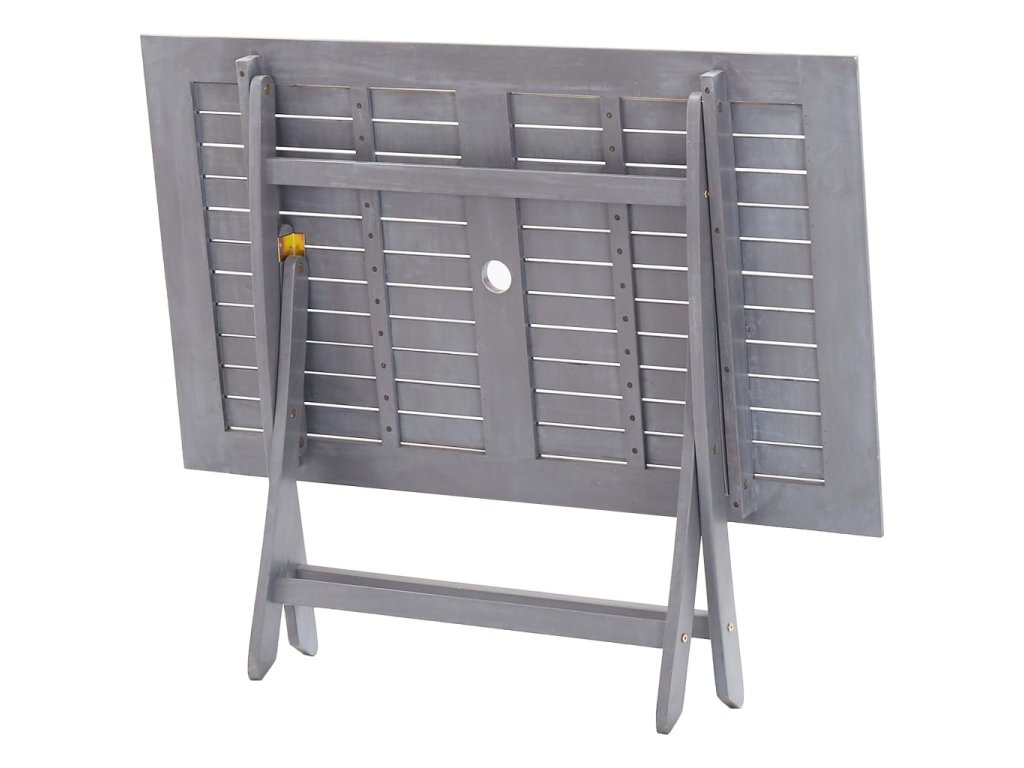 Venkovní jídelní stůl je vyrobený z masivního akáciového dřeva. Jedná se o tropické tvrdé dřevo, které se vyznačuje výtečnou odolností vůči povětrnostním vlivům a mimořádnou životností. Uprostřed stolu je otvor pro slunečník. Pokud ho právě nepotřebujete, můžete stůl složit, aby vám zbytečně nezabíral místo. Jídelní stůl je třeba nejdříve sestavit.