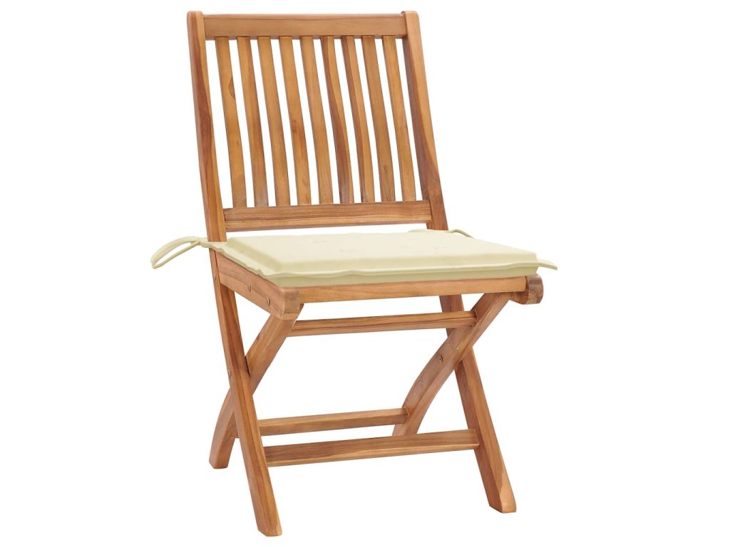 Nábytek je zhotovený z extrémně odolného teakového tvrdého dřeva, které již prošlo procesem smršťování, bylo uměle vysušené a poté jemně a dohladka obroušené. Teakové dřevo je oceňované pro svou výjimečnou pevnost a klimatickou odolnost, a proto je jedním z nejoblíbenějších materiálů pro výrobu zahradního nábytku. Jedná se o skvělou volbu, pokud si chcete pořídit venkovní výbavu, která vám bude sloužit dlouhá léta. Jídelní židle mají obroušený povrch, takže jsou odolné vůči povětrnostním podmínkám a snadno se čistí. Navíc je můžete složit, čímž ušetříte místo ve chvílích, kdy je zrovna nebudete používat. Podušky, které jsou součástí sady, nabízí mimořádné pohodlí. Každá poduška je opatřená 2 páry šňůrek, abyste mohli podušku pevně přivázat k židli.