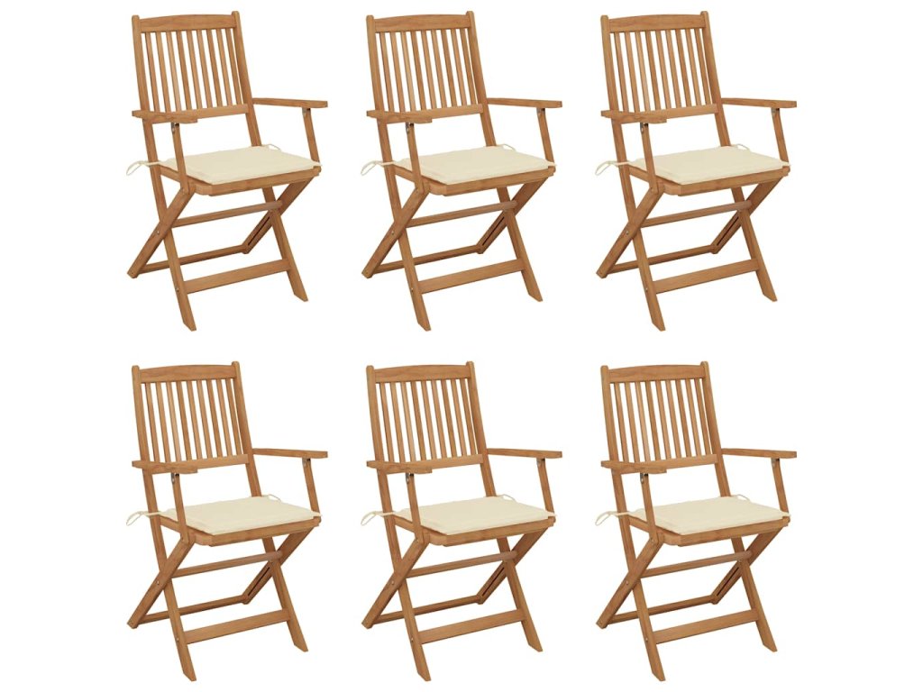 Skládací zahradní židle s poduškami 6 ks masivní akáciové dřevo