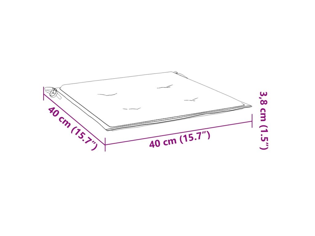 - Rozměry podušky: 40 x 40 x 4 cm (D x Š x T)