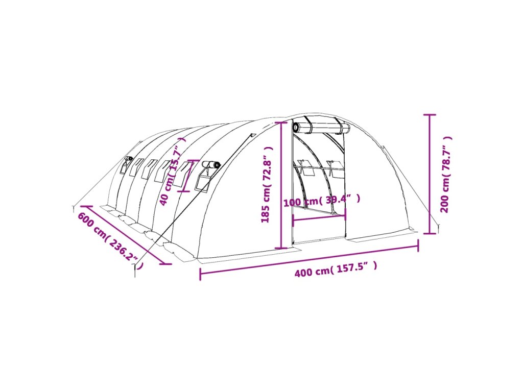 Skleník s ocelovým rámem bílý 24 m² 6 x 4 x 2 m