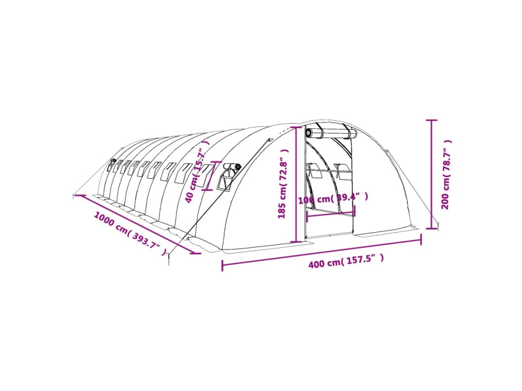 Skleník s ocelovým rámem bílý 40 m² 10 x 4 x 2 m