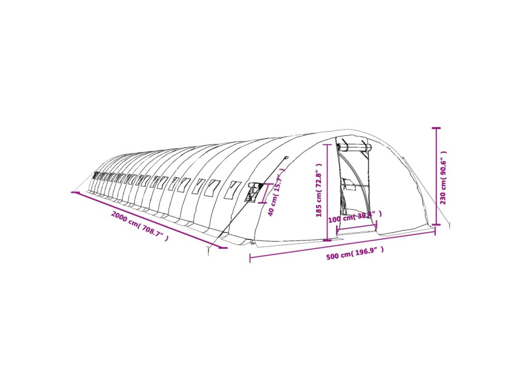 Skleník s ocelovým rámem zelený 100 m² 20 x 5 x 2,3 m