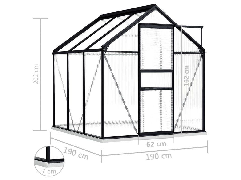 Skleník s podkladovým rámem antracitový 3,61 m²