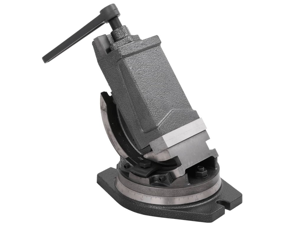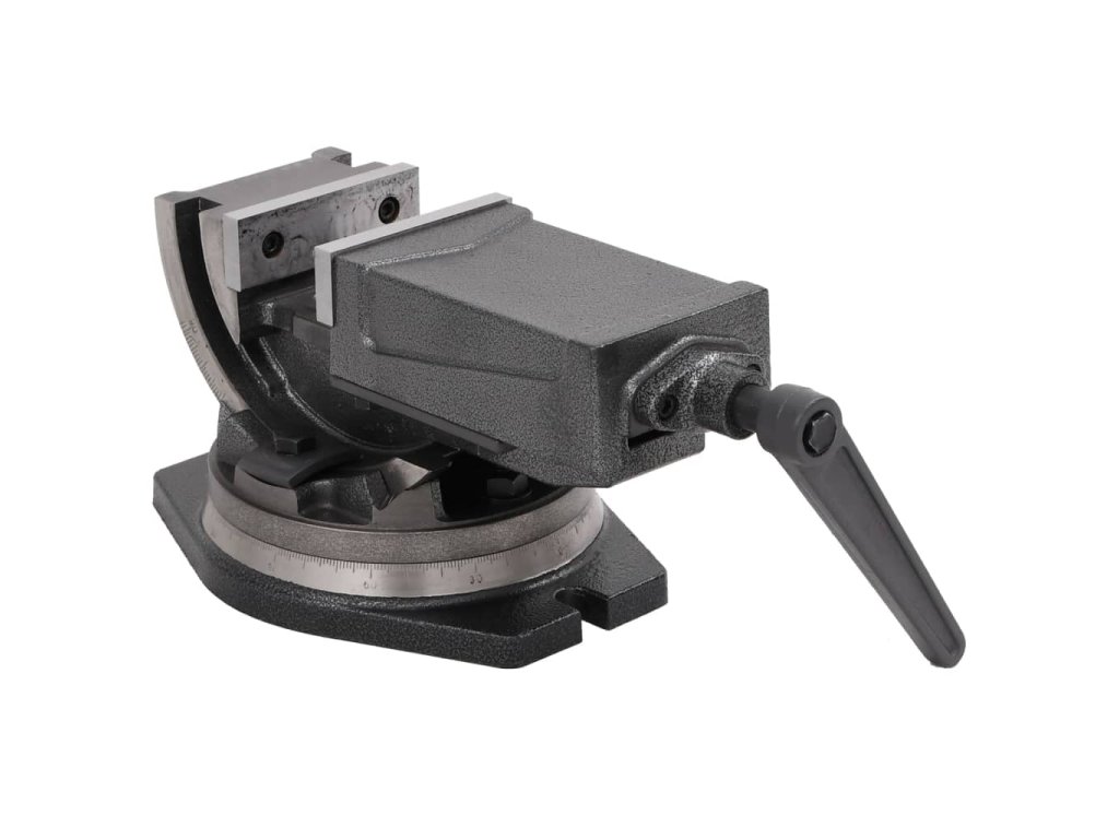Masivní šroub vám umožní přizpůsobit rozpětí vašemu obrobku na míru. Čelisti jsou kalené, a proto mohou vyhovět i potřebám náročného vrtání a frézování. Dvojosé uchycení a jemně dělená stupnice umožňují sklon 0–90°, který je možné zajistit upínací pákou.