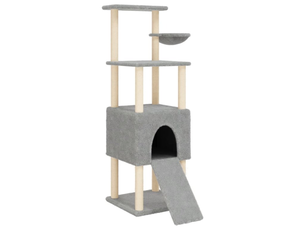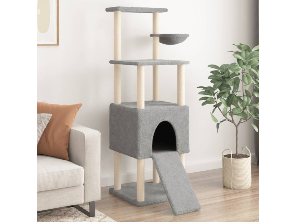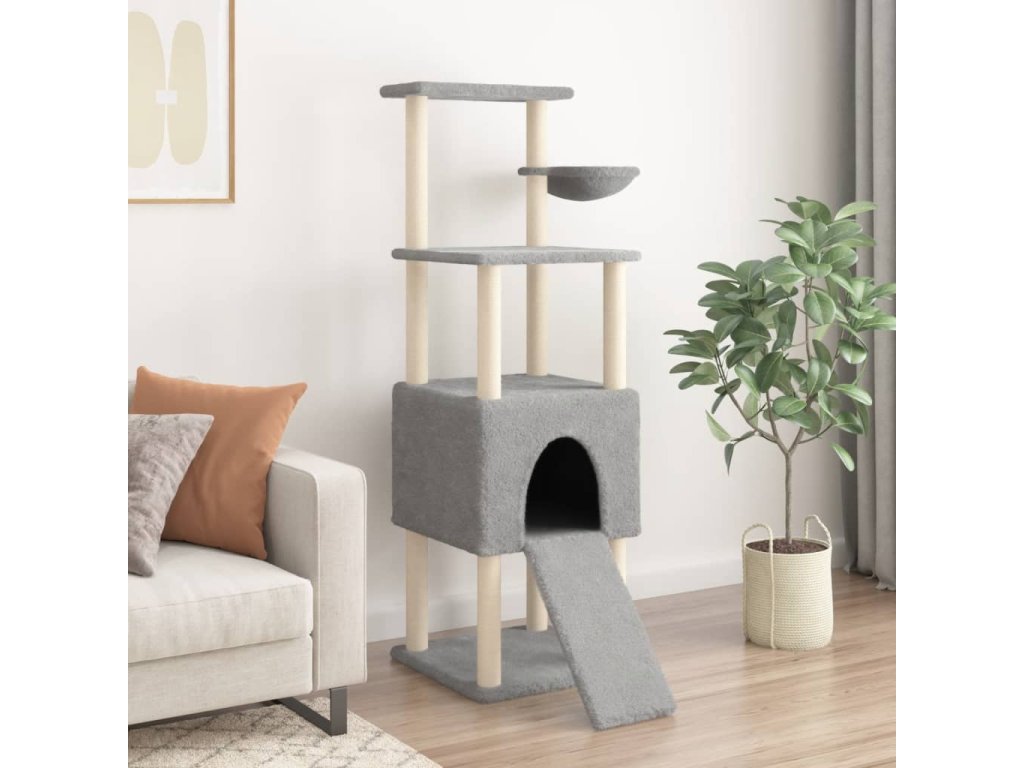 Škrabadlo pro kočky se sisalovými sloupky světle šedé 153 cm