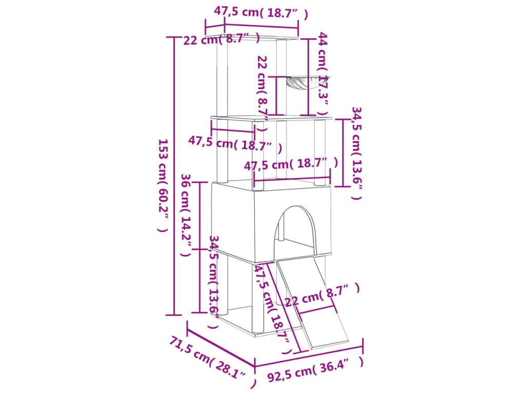 - Všestranná věž pro kočky: Víceúrovňový nábytek pro kočky je navržen s domečkem, žebříkem, košem a plošinami, takže poskytuje kočkám ideální místo pro šplhání, sezení, škrábání, schovávání se a také k odpočinku.
