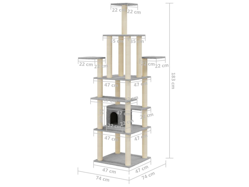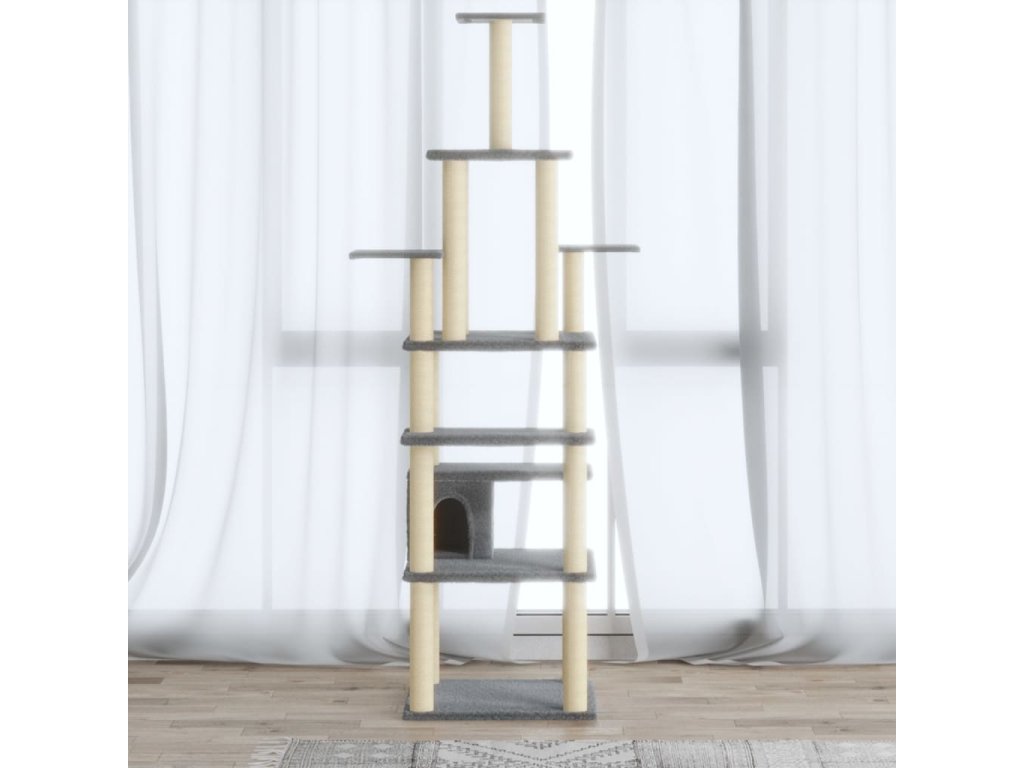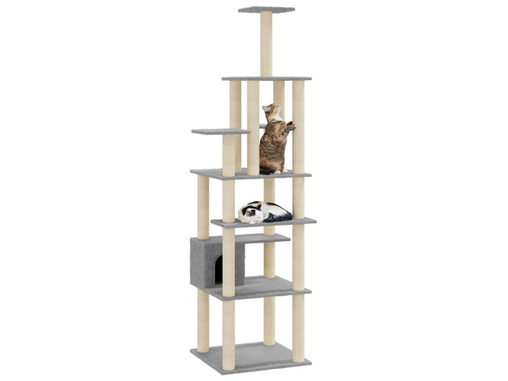 Škrabadlo pro kočky se sisalovými sloupky světle šedé 183 cm