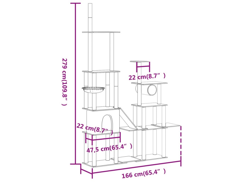 Škrabadlo pro kočky se sisalovými sloupky tmavě šedé 279 cm