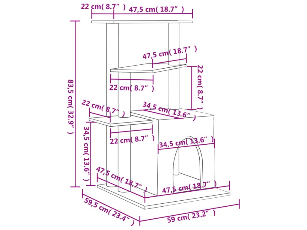 - Věž pro kočky "vše v jednom": Víceúrovňový nábytek pro kočky je navržen s domečkem a plošinami, které poskytují kočkám ideální místo pro šplhání, sezení, škrábání, schovávání se a také k odpočinku.