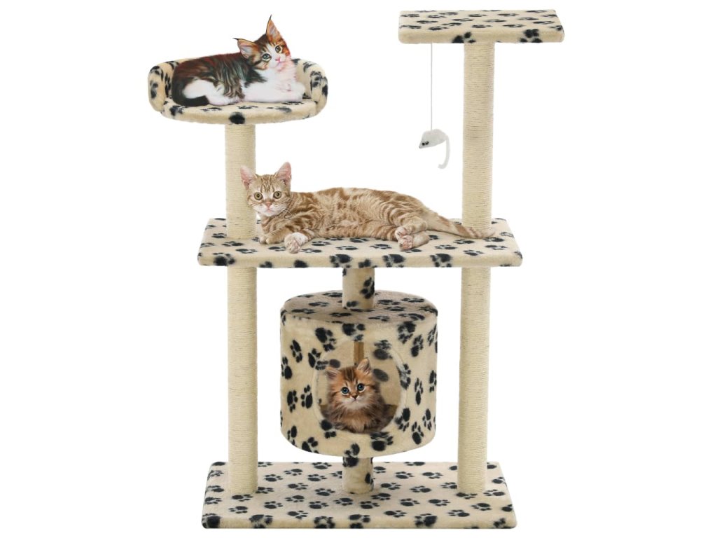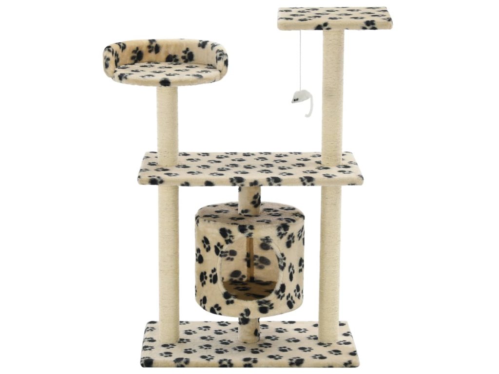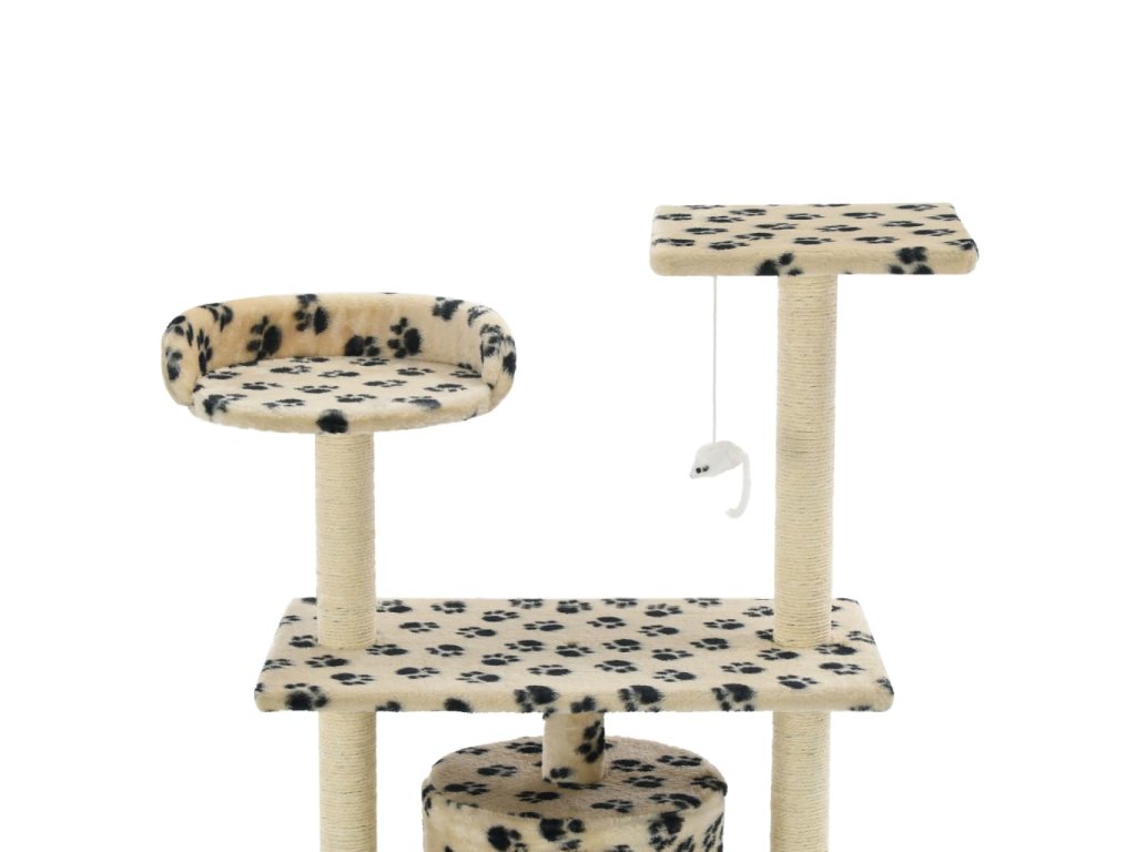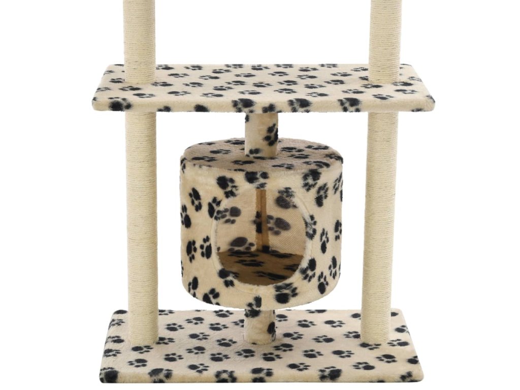 Škrabadlo pro kočky sisalové sloupky 95 cm béžové potisk tlapek