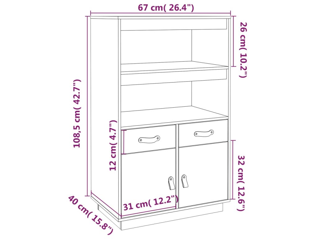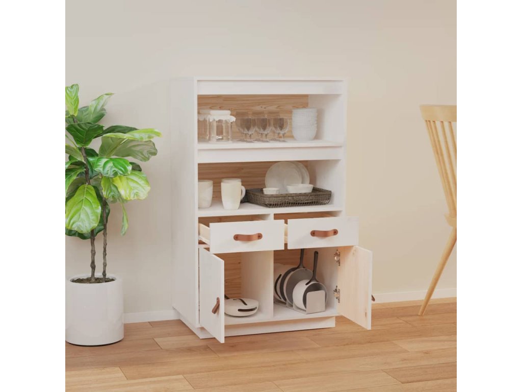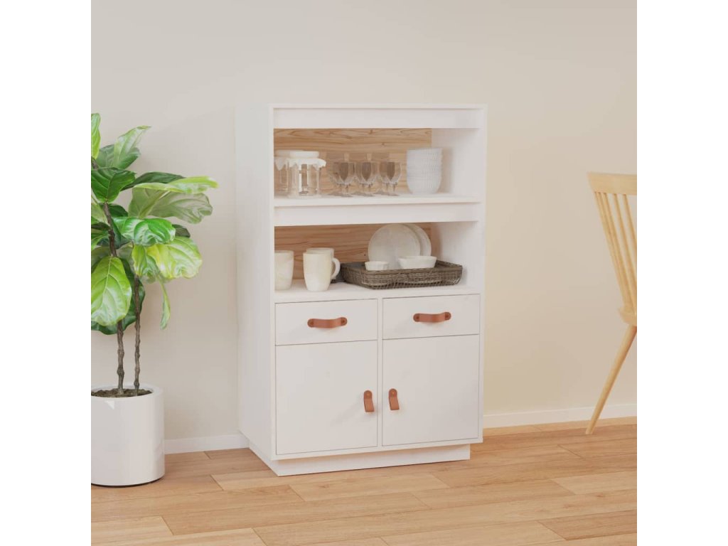 Skříň highboard bílá 67 x 40 x 108,5 cm masivní borové dřevo
