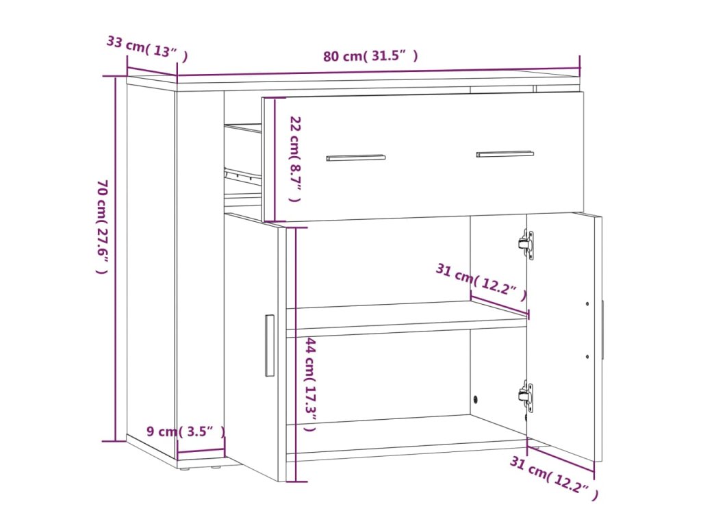 - Rozměry příborníku: 80 x 33 x 70 cm (D x Š x V)