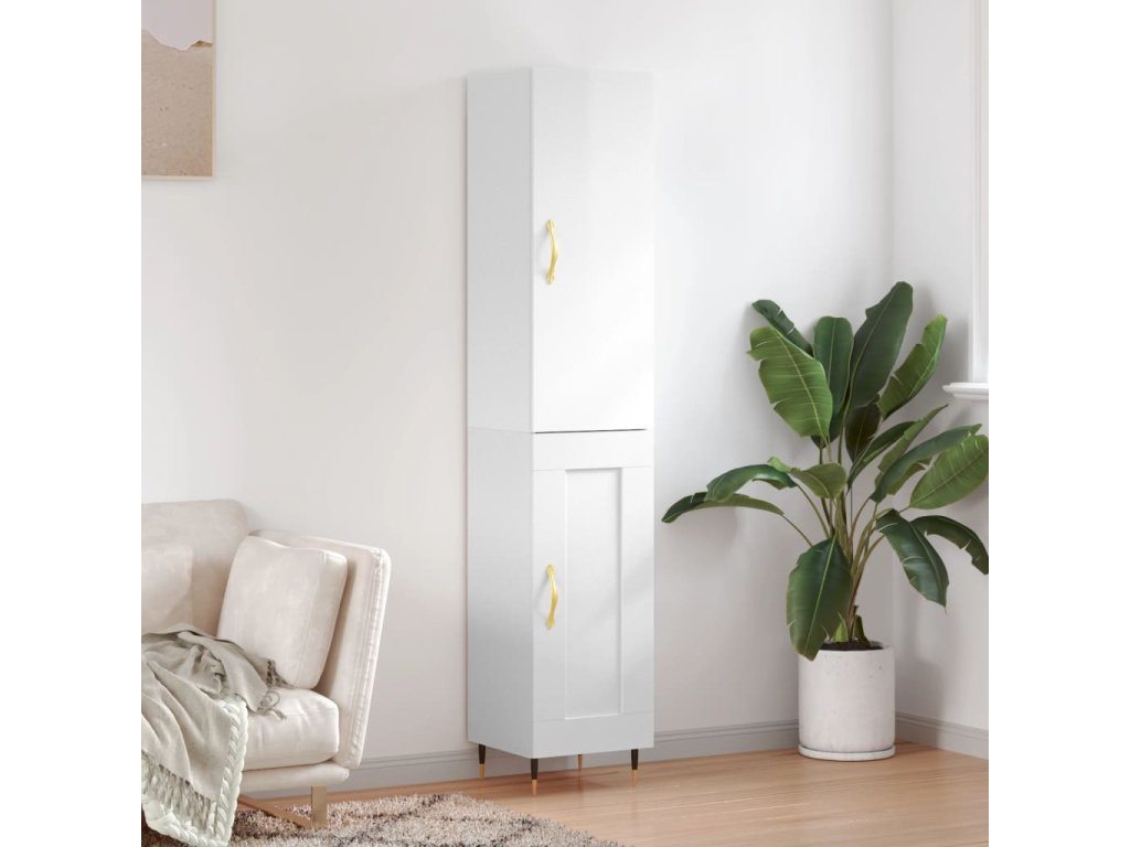 Skříň highboard bílá s vysokým leskem 34,5x34x180 cm kompozit