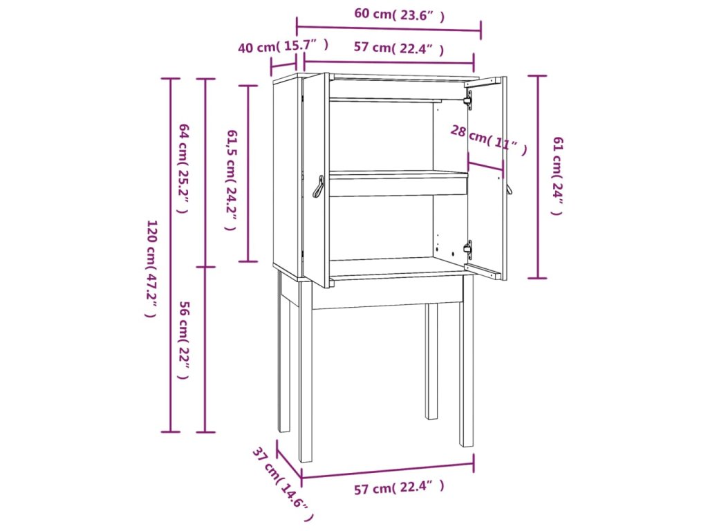- Rozměry: 60 x 40 x 120 cm (Š x H x V)