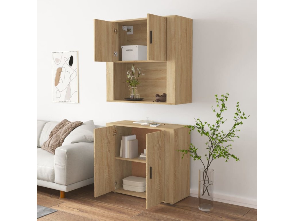 - Montáž na stěnu: Úložnou skříňku lze připevnit na stěnu na horní část příborníku a vytvořit tak vysokou skříň, která šetří místo na podlaze. Tímto způsobem můžete maximalizovat podlahovou plochu a udržet si v místnosti pořádek.