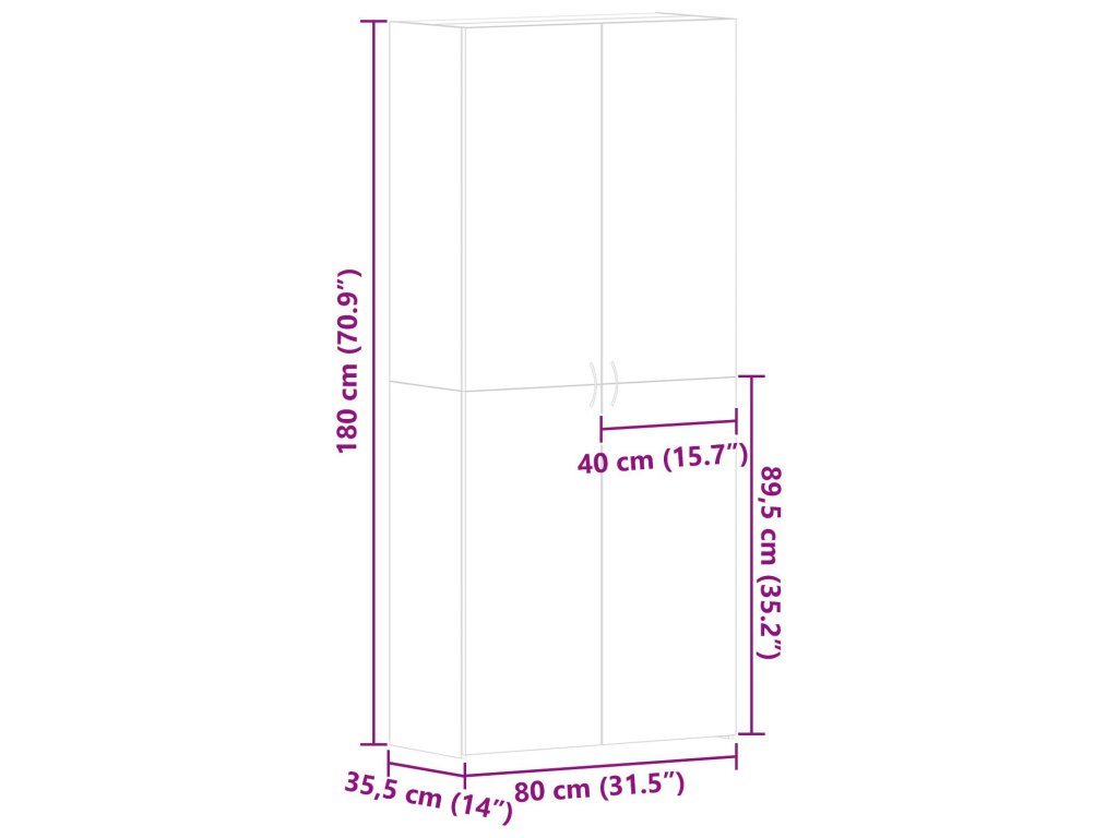 - Celkové rozměry: 80 x 35,5 x 180 cm (D x Š x V)
