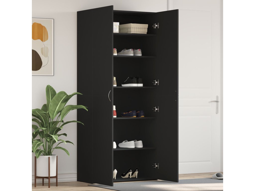 Skříň na obuv Černá 80 x 35.5 x 180 cm Kompozitní dřevo