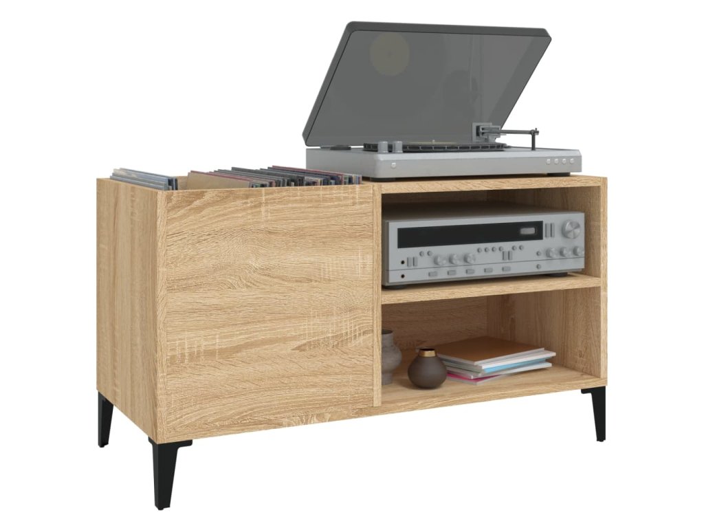 - Dostatek úložného prostoru: Prostorná gramofonová skříňka nabízí dostatek úložného prostoru pro LP desky a udržuje vaši hudební sbírku přehledně uspořádanou.