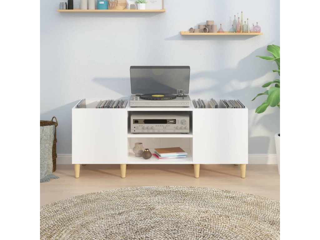 - Robustní horní část: Pevná horní část skříňky na vinyly je ideální pro umístění přehrávače nebo jiné elektroniky.