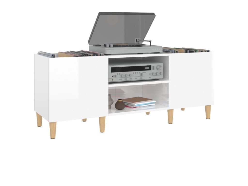 Skříňka na LP desky lesklá bílá 121x38x48 cm kompozitní dřevo